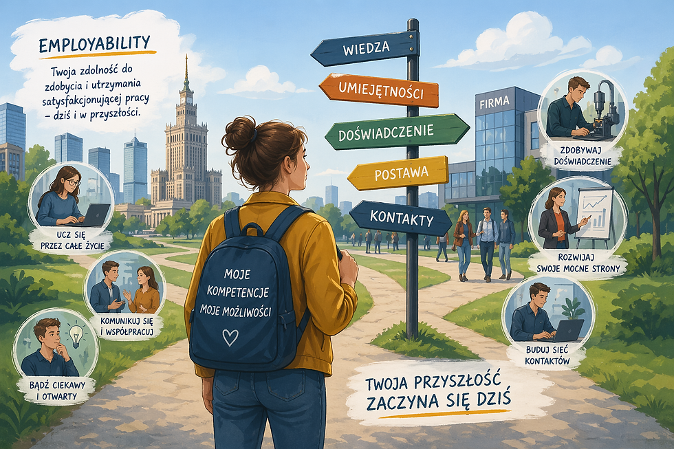 Rynek pracy zmienia się obecnie bardzo dynamicznie. Moje doświadczenia z emigracji pokazały mi, że kluczem do stabilności jest zatrudnialność (ang. employability). Czasem sytuacja wymaga podjęcia pracy poniżej formalnych kwalifikacji – w takich momentach decydująca okazuje się elastyczność i silna motywacja.